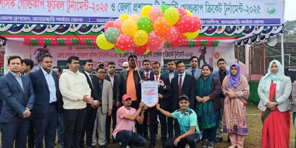 ক্রীড়া প্রতিবেদক: তারুণ্যের উৎসব ২০২৫ উদযাপন উপলক্ষ্যে খাগড়াছড়িতে জেলা প্রশাসক গোল্ডকাপ ফুটবল ও টি টোয়েন্টি গোল্ডকাপ ক্রিকেট টুর্নামেন্ট এর উদ্বোধন হয়েছে। আজ শনিবার (২৭ ডিসেম্বর) সকালে খাগড়াছড়ি স্টেডিয়ামে জেলা প্রশাসনের আয়োজনে ও জেলা ক্রীড়া সংস্থার ৯ম জেলা প্রশাসক গোল্ডকাপ ফুটবল…