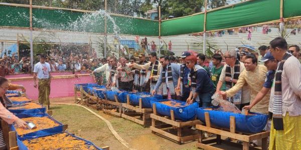 আহমদ বিলাল খান,রাঙ্গামাটি: পার্বত্য চট্টগ্রামকে দেশের মূলধারার উন্নয়নের সঙ্গে সমানতালে এগিয়ে নেওয়ার দৃঢ় প্রত্যয় ব্যক্ত করেছেন। আজ শুক্রবার (১৭ এপ্রিল) বিকেলে রাঙ্গামাটি চিং হ্লা মং মারী স্টেডিয়ামে মারমা সংস্কৃতিক সংস্থা (মাসস) আয়োজিত ঐতিহ্যবাহী জলকেলি উৎসব (সাংগ্রাই) উদ্বোধন অনুষ্ঠানে প্রধান অতিথির…