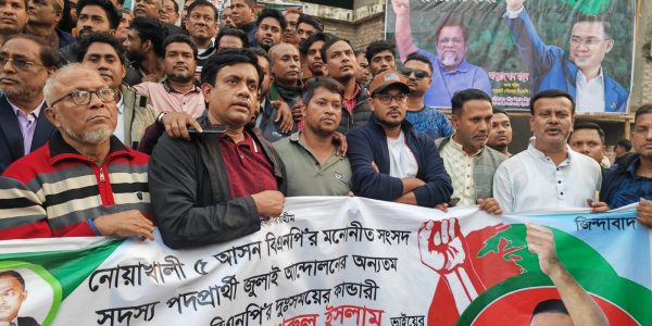 নোয়াখালী প্রতিনিধি: নোয়াখালী-৫ আসনের বিএনপির মনোনীত প্রার্থী মোহাম্মদ ফখরুল ইসলামের বিরুদ্ধে দায়ের করা গণঅভ্যুত্থান সংশ্লিষ্ট হত্যা মামলাকে মিথ্যা, উদ্দেশ্যপ্রণোদিত ও ষড়যন্ত্রমূলক আখ্যা দিয়ে নোয়াখালীর কোম্পানীগঞ্জে বিক্ষোভ মিছিল ও সমাবেশ করেছে বিএনপি এবং এর অঙ্গ ও সহযোগী সংগঠনের নেতাকর্মীরা। আজ মঙ্গলবার…