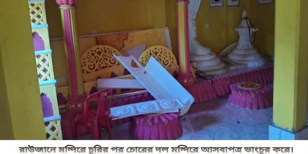 রাউজান প্রতিনিধিঃ রাউজানে এক রাতে দু’টি মন্দির চুরির ঘটনা ঘটেছে। গত রবিবার দিবাগত গভীর রাতে রাউজান উপজেলার নোয়াজিষপুর ইউনিয়নের ৫ নম্বর ওয়ার্ডে এই ঘটনা ঘটে। জানা যায়, নোয়াজিষপুর ইউনিয়নের ৫নম্বর ওয়ার্ডের দুলাল ডাক্তারের বাড়ি ও রবীন্দ্র ডাক্তার বাড়িতে পৃথক তালা…