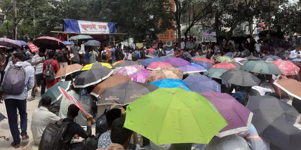 তপ্ত রোদে ছাতা মাথায় নিয়ে প্রাথমিকের সুপারিশপ্রাপ্তদের শাহবাগে অবস্থান
