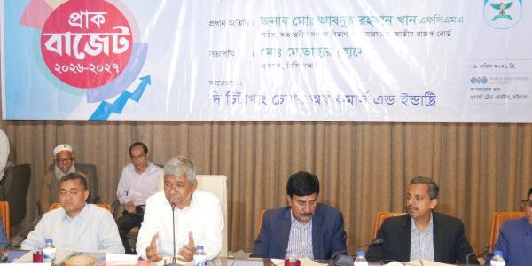 নগর প্রতিবেদক: ২০২৬-২০২৭ অর্থ বছরের জাতীয় বাজেট প্রণয়নের প্রাক্কালে জাতীয় রাজস্ব বোর্ডের চেয়ারম্যান মোঃ আবদুর রহমান খান এফসিএমএ চিটাগাং চেম্বার অব কমার্স এন্ড ইন্ডাষ্ট্রি এর সদস্য ও অত্র অঞ্চলের ব্যবসায়ী নেতৃবৃন্দের সাথে আজ বৃহস্পতিবার (০৯ এপ্রিল) বিকালে আগ্রাবাদস্থ ওয়ার্ল্ড ট্রেড…