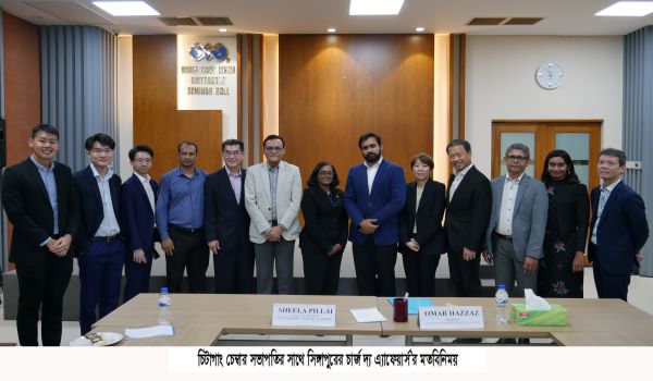নগর প্রতিবেদক: বাংলাদেশে নিযুক্ত সিঙ্গাপুরের চার্জ দ্য এ্যাফেয়ার্স শিলা পিল্লাই ১১ সদস্যবিশিষ্ট একটি ব্যবসায়ী প্রতিনিধিদলসহ আজ মঙ্গলবার (২৮ নভেম্বর) বিকেলে ওয়ার্ল্ড ট্রেড সেন্টারস্থ চেম্বার কার্যালয়ে দি চিটাগাং চেম্বার অব কমার্স এন্ড ইন্ডাষ্ট্রি’র সভাপতি ওমর হাজ্জাজ’র সাথে এক মতবিনিময়ে মিলিত হন।…