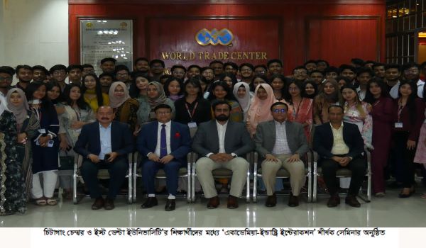 নগর প্রতিবেদক: দি চিটাগাং চেম্বার অব কমার্স এন্ড ইন্ডাষ্ট্রি এবং ইস্ট ডেল্টা ইউনিভার্সিটি (ইডিইউ)’র স্কুল অব বিজনেস ফ্যাকাল্টির যৌথ উদ্যোগে ‘একাডেমিয়া-ইন্ডাষ্ট্রি ইন্টেরাকশন’ শীর্ষক সেমিনার আজ শনিবার (০২ ডিসেম্বর) সকালে ওয়ার্ল্ড ট্রেড সেন্টারে অনুষ্ঠিত হয়। এ সময় চিটাগাং চেম্বার প্রেসিডেন্ট ওমর…
