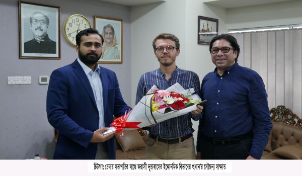 নগর প্রতিবেদক: বাংলাদেশস্থ ফরাসী দূতাবাসের ইকোনমিক বিভাগের প্রধান জুলিয়ান ডিউর আজ মঙ্গলবার (১৯ সেপ্টেম্বর) সকালে ওয়ার্ল্ড ট্রেড সেন্টারস্থ চেম্বার কার্যালয়ে দি চিটাগাং চেম্বার অব কমার্স এন্ড ইন্ডাষ্ট্রি’র সভাপতি ওমর হাজ্জাজ’র সাথে এক সৌজন্য সাক্ষাতে মিলিত হন। চেম্বার সভাপতি ওমর হাজ্জাজ…