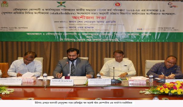 নগর প্রতিবেদক: দি চিটাগাং চেম্বার অব কমার্স এন্ড ইন্ডাষ্ট্রি (সিসিসিআই) এবং রেজিস্ট্রার অব জয়েন্ট স্টক কোম্পানিজ এন্ড ফার্মস (আরজেএসসি)’র যৌথ উদ্যোগে জাতীয় শুদ্ধাচার কৌশল কর্মপরিকল্পনা বাস্তবায়ন ও সুশাসন প্রতিষ্ঠার অংশ হিসেবে অংশীজনের অংশগ্রহণে এক মতবিনিময় সভা আজ বৃহস্পতিবার (২১ সেপ্টেম্বর) ওয়ার্ল্ড…