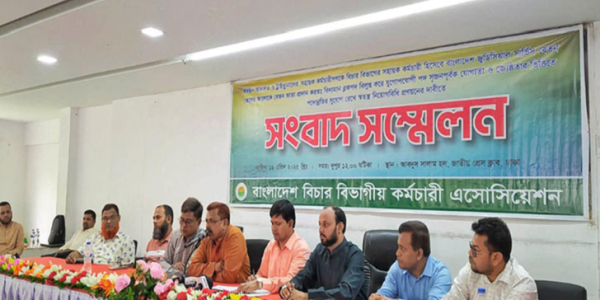 দি ক্রাইম ডেস্ক: বাংলাদেশ জুডিসিয়াল সার্ভিস বেতন স্কেলের আলোকে বেতন ভাতা ও স্বতন্ত্র নিয়োগবিধি প্রণয়নের দুই দফা দাবি জানিয়েছে বাংলাদেশ বিচার বিভাগীয় কর্মচারী অ্যাসোসিয়েশন। এই দুই দফা না মানলে কর্মবিরতির হুঁশিয়ারি দিয়েছেন সারা দেশের বিচার বিভাগের কর্মচারীরা। শনিবার (১৯ এপ্রিল)…