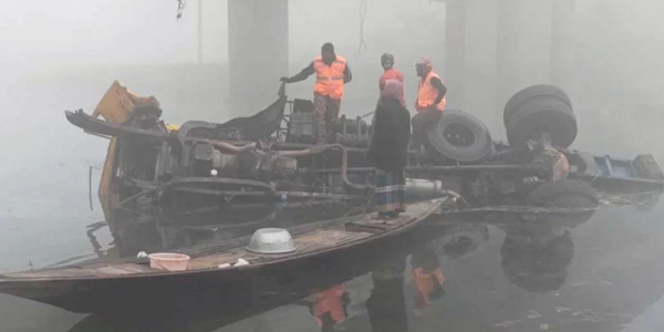 ব্রিজের রেলিং ভেঙে ডালবোঝাই ট্রাক নদীতে, চালক ও হেলপার নিহত