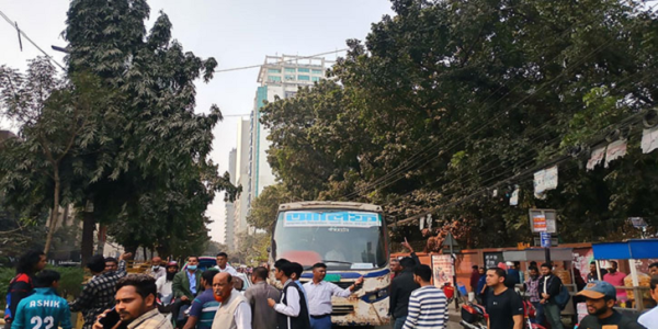 দি ক্রাইম ডেস্ক: সরকারি তিতুমীর কলেজকে স্বতন্ত্র বিশ্ববিদ্যালয় হিসেবে ঘোষণার দাবিতে গুলশানে বাঁশ ফেলে সড়ক অবরোধ করেছেন শিক্ষার্থীরা। এতে লিংক রোডের উভয় পাশে যান চলাচল বন্ধ রয়েছে। সোমবার (৩ ফেব্রুয়ারি) দুপুর ১২টা ২০ মিনিটের দিকে সড়কের উপর বাঁশ ফেলে অর্ধশতাধিক…