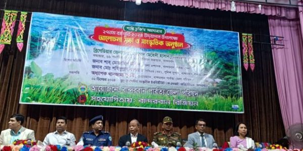 বশির আহাম্মদ, জেলা প্রতিনিধি বান্দরবান : পাহাড়ে বসবাসকারী জনমানুষের মতপার্থক্যের মধ্যে পার্বত্য শান্তি চুক্তির ২৭টি বছর পেরিয়ে গেলো। চুক্তি পরবর্তী দেশের রাজনৈতিক পরিক্রমায় যারাই সরকার গঠন করেছেন সকলেই শান্তিচুক্তির পূর্ণ বাস্তবায়নে ভূমিকা রেখেছেন।আজ সোমবার (০২ ডিসেম্বর)সকালে বান্দরবানে পার্বত্য শান্তি চুক্তির…