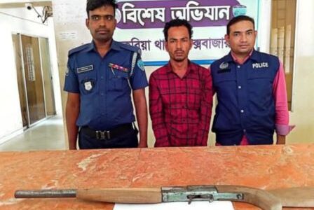 মিজবাউল হক, চকরিয়া : কক্সবাজারের চকরিয়া থানা পুলিশ অভিযান চালিয়ে দেশীয় তৈরী এলজি (একনলা) বন্দুকসহ সাইফুল ইসলাম প্রঃ রোমান (৩৫) নামে এক সন্ত্রাসীকে গ্রেফতার করেছে। আজ সোমবার (২৬ মে) ভোররাতে উপজেলার ডুলাহাজারা ইউনিয়নের চা বাগানের পার্শ্ববর্তী হায়দার নাশি নামক স্থানে…