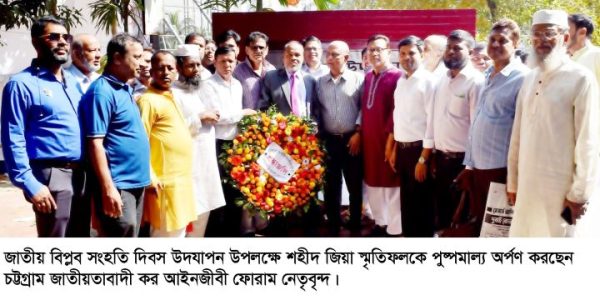 প্রেস বিজ্ঞপ্তি: চট্টগ্রাম জাতীয়তাবাদী কর আইনজীবী ফোরামের উদ্যোগে আজ বৃহস্পতিবার (০৭ নভেম্বর) জাতীয় বিপ্লব সংহতি দিবস উদযাপন উপলক্ষে চট্টগ্রাম ষোলশহর ২নং গেইট জাতীয় বিপ্লব উদ্যানে শহীদ জিয়া স্মৃতিফলকে কর আইনজীবী ফোরামের উদ্যোগে পুষ্পমাল্য অর্পণ করা হয়। এ সময় সংক্ষিপ্ত এক…