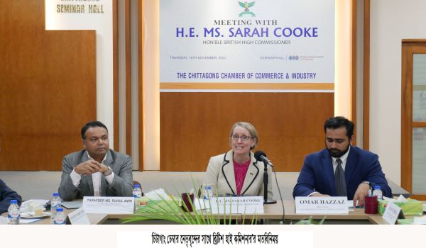 প্রেস বিজ্ঞপ্তি: দি চিটাগাং চেম্বার অব কমার্স এন্ড ইন্ডাষ্ট্রি পরিদর্শন করেন বাংলাদেশ নিযুক্ত ব্রিটিশ হাইকমিশনার মিজ সারাহ কুক। বৃহস্পতিবার ১৬ নভেম্বর দুপুরে পরিদর্শনকালে চিটাগাং চেম্বার পরিচালকমন্ডলীর সাথে ওয়ার্ল্ড ট্রেড সেন্টারস্থ চেম্বার কার্যালয়ে এক মতবিনিময় সভায় মিলিত হন। এ সময় ব্রিটিশ…