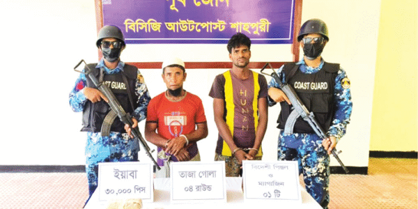 কক্সবাজার প্রতিনিধি: কক্সবাজারের টেকনাফে মাদকবিরোধী অভিযানে কোস্টগার্ডের সঙ্গে ‘বন্দুকযুদ্ধে’ গুলিবিদ্ধ একজনসহ ৩ রোহিঙ্গাকে আটক করা হয়েছে। এ সময় তাদের নৌকায় তল্লাশি চালিয়ে ৩০ হাজার ইয়াবা, একটি বিদেশি পিস্তল ও চার রাউন্ড গুলি উদ্ধার করা হয়েছে বলে জানিয়েছে কোস্টগার্ড। আটককৃতরা হলেন,…