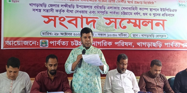 খাগড়াছড়ি প্রতিনিধি: খাগড়াছড়ির লক্ষ্মীছড়ি উপজেলার বর্মাছড়িতে অস্থায়ী সেনা ক্যাম্প স্থাপনে ইউপিডিএফের বাধা দেওয়া এবং সম্প্রতি পার্বত্য চট্টগ্রামে ধর্ষণ, গুম ও খুনের প্রতিবাদে সংবাদ সম্মেলন হয়েছে। গতকাল মঙ্গলবার সকালে খাগড়াছড়ি প্রেস ক্লাবে পার্বত্য চট্টগ্রাম নাগরিক পরিষদ আয়োজিত সংবাদ সম্মেলনে বক্তারা অভিযোগ…