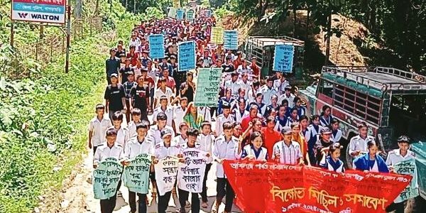 খাগড়াছড়ি প্রতিনিধি: খাগড়াছড়ি পার্বত্য জেলার পৃথকভাবে রামগড় ও লক্ষীছড়ি উপজেলায় সেনা অভিযানের নামে দমন-পীড়নের প্রতিবাদে বিক্ষোভ মিছিল করেছে। পার্বত্য চট্টগ্রামে সেনা অভিযানের নামে স্কুলভবন দখল করে ‘অস্থায়ী ক্যাম্প’ বানানো, গ্রামে গ্রামে নির্বিচারে তল্লাশি, নারীদের সাথে অসদাচরণ, লুটপাট, ধরপাকড়, শিক্ষা কার্যক্রম…