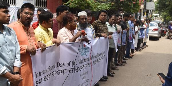 নগর প্রতিবেদক: ত্রয়োদশ জাতীয় সংসদ নির্বাচনের আগেই গুম হওয়া ব্যক্তিদের ফিরিয়ে আনার দাবি জানিয়েছেন চট্টগ্রামের মানবাধিকার কর্মী, আইনজীবী, শিক্ষক, সাংবাদিক ও বিভিন্ন শ্রেণি-পেশার মানুষ।আজ শনিবার (৩০ আগস্ট) সকালে আন্তর্জাতিক গুম প্রতিরোধ দিবস উপলক্ষে মানবাধিকার সংগঠন অধিকার চট্টগ্রাম প্রেস ক্লাবের সামনে মানববন্ধন…