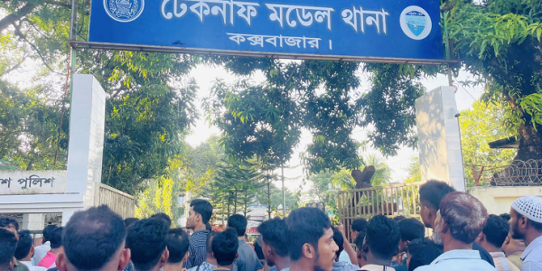 টেকনাফে সাবেক ইউপি সদস্য হত্যায় জড়িতদের গ্রেপ্তারের দাবিতে থানা ঘেরাও