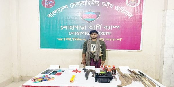 নিজস্ব প্রতিনিধি: দক্ষিণ চট্টগ্রামের লোহাগাড়ায় সেনাবাহিনীর অভিযানে উপজেলার চরম্বা ইউনিয়নের তেলিবিলা ৫নং ওয়ার্ড এলাকার শীর্ষ সন্ত্রাসী রিফাত (৩৫) নামে একজনকে অস্ত্রসহ আটক করা হয়েছে। গোয়েন্দা তথ্যের ভিত্তিতে তার বসতঘর থেকে অস্ত্রসহ তাকে আটক করা হয় ১৫ জানুয়ারী বৃহস্পতিবার বিকেলে। আটককৃত…