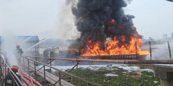 নারায়ণগঞ্জ প্রতিনিধি: নারায়ণগঞ্জের ফতুল্লার বুড়িগঙ্গা নদীতে তেলবাহী ট্রলারে আগুন লেগেছে। বুধবার (২৬ জুন) দুপুর দেড়টার দিকে মেঘনা ডিপোর জেটি সংলগ্ন নদীতে ট্রলারটিতে আগুন লাগে। এসময় ট্রলারটিতে ৮৬ ড্রাম পেট্রোল ও ৭০ ড্রাম ডিজেল ছিল। প্রায় সব ড্রাম আগুনে বিস্ফোরিত হয়েছে…