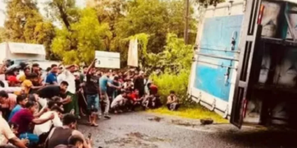 কাভার্ড ভ্যান-মোটরসাইকেল সংঘর্ষে প্রাণ গেল তরুণের, ছবি তোলার ধুম