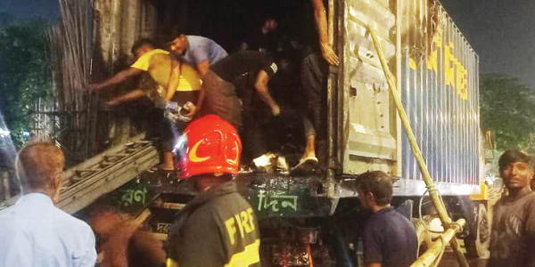 নগরীতে চলন্ত কাভার্ডভ্যানে আগুন