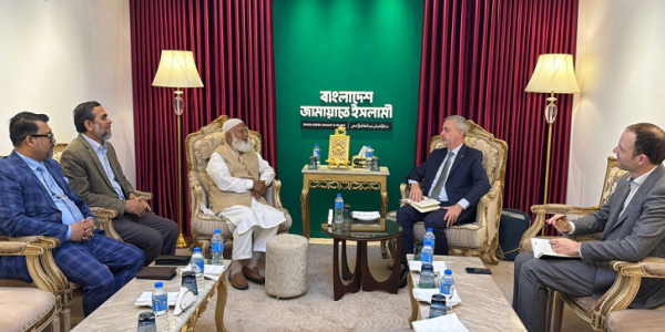 দি ক্রাইম ডেস্ক: বাংলাদেশ জামায়াতে ইসলামীর আমির ডা. শফিকুর রহমানের সঙ্গে সাক্ষাৎ করেছেন ইউরোপীয় ইউনিয়নের(ইইউ) রাষ্ট্রদূত মাইকেল মিলার। বৃহস্পতিবার(২৯ জানুয়ারি) সকাল সাড়ে ৯টায় জামায়াতে ইসলামীর আমির ডা. শফিকুর রহমানের বসুন্ধরার কার্যালয়ে এ সৌজন্য সাক্ষাৎ অনুষ্ঠিত হয়। এসময় ইইউ রাষ্ট্রদূতের সঙ্গে…