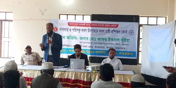 সেলিম উদ্দিন, ঈদগাঁও: দানাদার পরিপক্ষ লবণ উৎপাদন শীর্ষক দিনব্যাপী লবণ চাষী প্রশিক্ষণ সম্পন্ন হয়েছে।আজ বুধবার (১৮ ফেব্রুয়ারি) সকালে কক্সবাজারের ঈদগাঁও উপজেলার ইসলামপুর গোমাতলী লবণ কেন্দ্র কতৃক আয়োজিত প্রশিক্ষণে প্রধান অতিথি হিসাবে ছিলেন বিসিক কক্সবাজার উপ মহাব্যবস্থাপক মোঃ জাফর ইকবাল ভুইয়া।…