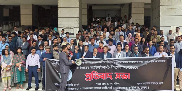 দি ক্রাইম ডেস্ক: স্বায়ত্তশাসনের প্রস্তাব বাতিল করার প্রেক্ষিতে অর্থ উপদেষ্টা সালেহউদ্দিন আহমেদের পদত্যাগ চেয়েছেন বাংলাদেশ ব্যাংকের কর্মকর্তারা। সোমবার (৯ ফেব্রুয়ারি) দুপুরে বাংলাদেশ ব্যাংকের ৩০ ভবনের সামনে এক প্রতিবাদ সভায় এই দাবি জানান কেন্দ্রীয় ব্যাংকের কর্মকর্তাদের সংগঠন, অফিসার্স ওয়েলফেয়ার কাউন্সিলের ব্যানারে।…