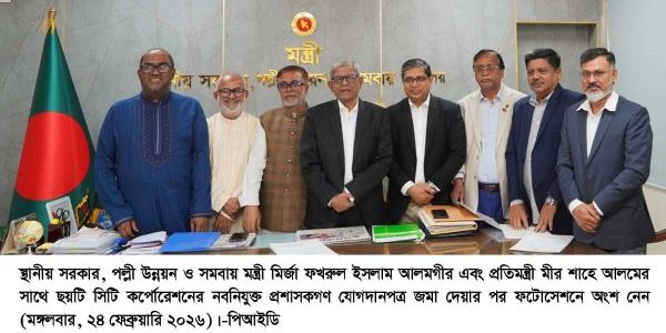 ঢাকা অফিস: স্থানীয় সরকার মন্ত্রণালয়ে আজ মঙ্গলবার(২৪ ফেব্রুয়ারী) আনুষ্ঠানিক যোগদান করলেন ছয় সিটি করপোরেশনের প্রশাসক। এ সময় স্থানীয় সরকার, পল্লী উন্নয়ন ও সমবায় মন্ত্রী মির্জা ফখরুল ইসলাম আলমগীর, প্রতিমন্ত্রী মীর শাহে আলম ও পল্লী উন্নয়ন ও সমবায় বিভাগের সচিব মোহাং…