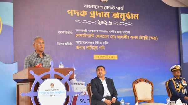 আজ মঙ্গলবার(০৩ ফেব্রুয়ারী) রাজধানীর আগারগাঁওয়ে বাংলাদেশ কোস্ট গার্ড সদরদপ্তরে কোস্ট গার্ড আয়োজিত ‘বাংলাদেশ কোস্ট গার্ড পদক প্রদান ২০২৬’ অনুষ্ঠানে প্রধান অতিথির বক্তব্যে তিনি এসব কথা বলেন।