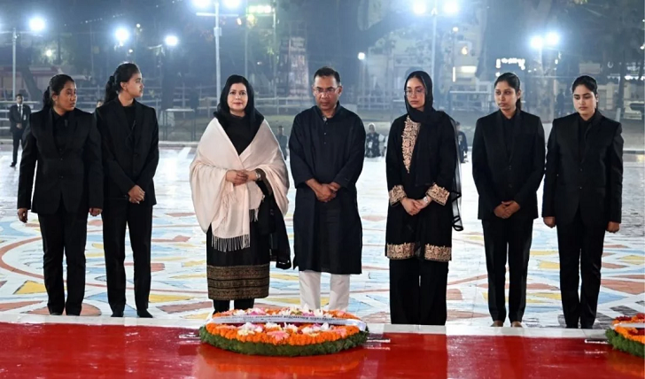 এরপর প্রধানমন্ত্রী তার স্ত্রী ও কন্যা জায়মার সঙ্গে শহীদ বেদিতে ফুল দিয়ে শ্রদ্ধা জানান এবং কিছুক্ষণ নীরবতা পালন করেন।