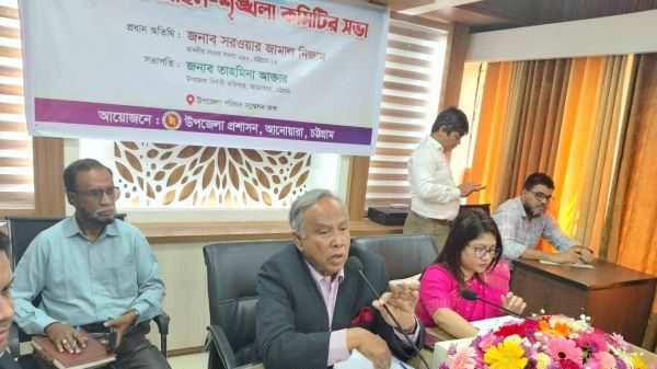 উপজেলা নির্বাহী কর্মকর্তা তাহমিনা আক্তারের সভাপতিত্বে অনুষ্ঠিত আইনশৃঙ্খলা সভায় উপজেলা সহকারী কমিশনার (ভূমি) দীপক ত্রিপুরা, আনোয়ারা থানার ওসি জুনায়েত চৌধুরী সহ উপজেলার বিভাগীয় কর্মকর্তাগণ ও কমিটির সদস্য বৃন্দ উপস্থিত ছিলেন।