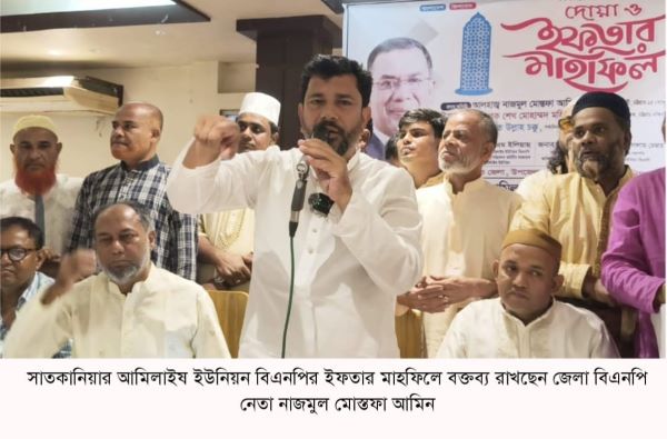রোববার (৮মার্চ) বিকালে সাতকানিয়া উপজেলার আমিলাইষ ইউনিয়ন বিএনপি অঙ্গ ও সহযোগী সংগঠনের উদ্যােগে সরওয়ার বাজারস্থ একটি কমিউনিটি সেন্টারে আয়োজিত ইফতার ও দোয়া মাহফিলে প্রধান অতিথির বক্তব্যে চট্টগ্রাম দক্ষিণ জেলা বিএনপির আহ্বায়ক কমিটির সদস্য ও ত্রয়োদশ জাতীয় সংসদ নির্বাচনের বিএনপি’র মনোনীত প্রার্থী নাজমুল মোস্তফা আমিন এসব কথা বলেন।