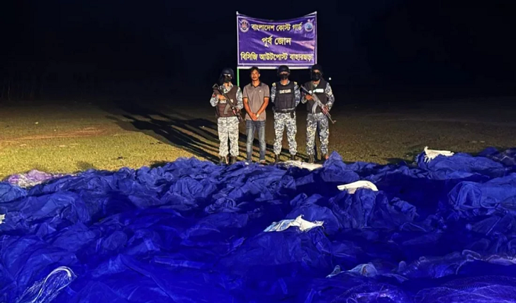 দি ক্রাইম ডেস্ক: কক্সবাজারের টেকনাফে কোস্ট গার্ডের যৌথ অভিযানে প্রায় ১১৮ কোটি টাকা মূল্যের বিপুল পরিমাণ অবৈধ জাল জব্দ করা হয়েছে। গোপন সংবাদের ভিত্তিতে বৃহস্পতিবার (২ এপ্রিল) বিকেল ৫টা থেকে রাত ৮টা পর্যন্ত কোস্ট গার্ড ও মৎস্য অধিদপ্তরের সমন্বয়ে টেকনাফ, বাহারছড়া এবং শামলাপুর বাজার এলাকায় যৌথ অভিযান পরিচালনা করে এই জাল জব্দ করা হয়।