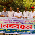 শনিবার (২৫ এপ্রিল) দুপুর ১২টায় বিশ্ববিদ্যালয়ের বুদ্ধিজীবী চত্বরে মানববন্ধন করেন চবিসাসের সদস্যরা।