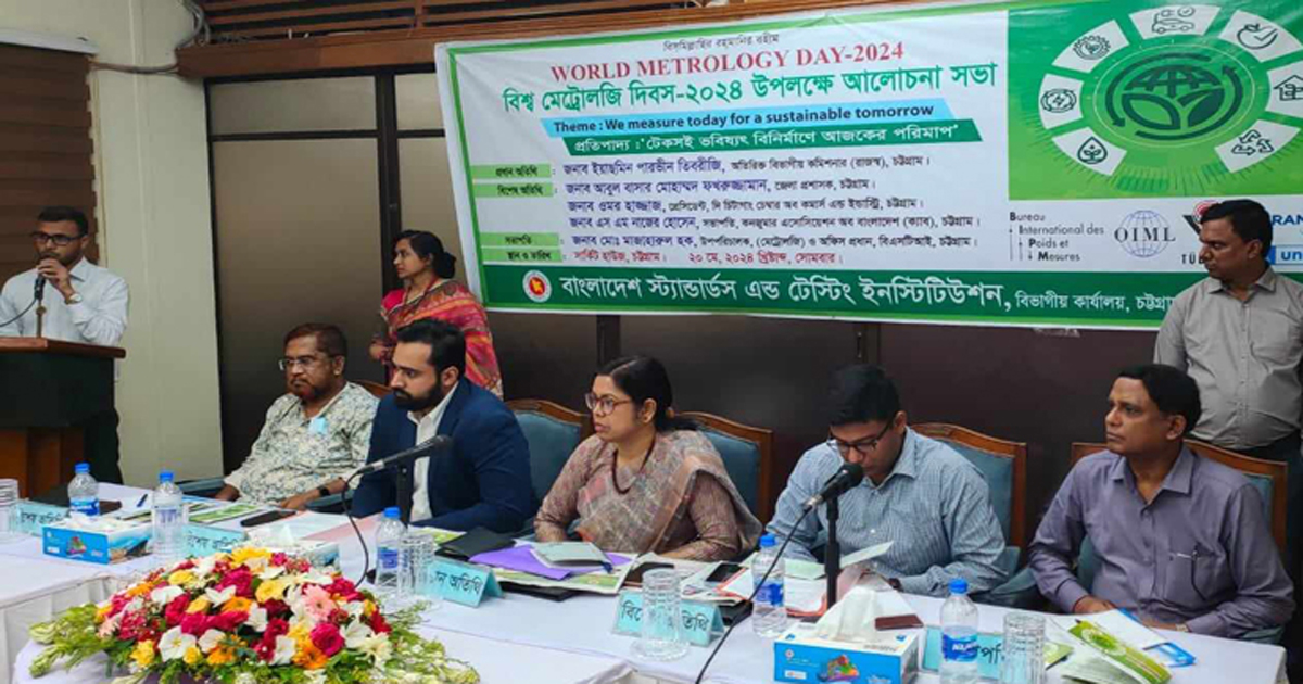 সোমবার দুপুরে চট্টগ্রাম সার্কিট হাউসের সম্মেলন কক্ষে বিশ্ব মেট্রোলজি দিবসের আলোচনা সভায় বিএসটিআই চট্টগ্রাম বিভাগীয় কার্যালয়ের প্রধান মো. মাজহারুল হক এ তথ্য জানান। সভায় প্রধান অতিথি ছিলেন অতিরিক্ত বিভাগীয় কমিশনার ইয়াছমিন পারভীন তিবরীজি, বিশেষ অতিথি ছিলেন অতিরিক্ত জেলা ম্যাজিস্ট্রেট একেএম গোলাম মোর্শেদ খান, চট্টগ্রাম চেম্বার সভাপতি ওমর হাজ্জাজ ও ক্যাবের সভাপতি এসএম নাজের হোসেন।