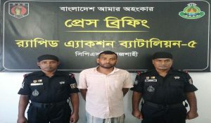 র্যাবের মুখপাত্র দি ক্রাইমকে জানান, ধৃত আসামী একজন এলাকার চিহ্নিত মাদক ও অস্ত্র ব্যবসায়ী। সে পেশায় একজন রাজমিস্ত্রী। সে নিজ পেশার আড়ালে আইন-শৃঙ্খলা বাহিনীর চোখ ফাঁকি দিয়ে অবৈধ আগ্নেয়াস্ত্র, অবৈধ মাদকদ্রব্য ফেন্সিডিল, ইয়াবাসহ বিভিন্ন মাদক সীমান্তবর্তী অজ্ঞাত স্থান হতে নদী পার করে রাজশাহীর বিভিন্ন মাদক ও অস্ত্র ব্যবসায়ীর নিকট বিক্রয় করে আসছিল। এরই প্রেক্ষিতে র্যাবের গোয়েন্দা দল ধৃত আসামীর গতিবিধির নজরদারী শুরু করে। গোয়েন্দা দল এটাও সনাক্ত করতে সক্ষম হয় যে, পাচারের পূর্বে ধৃত আসামী পার্শ্ববর্তী দেশ হতে অস্ত্র ও মাদক সংগ্রহ করে রাতে কিছু সময়ের জন্য তা মজুদ করে এবং দ্রুত সময়ের মধ্যে অন্যান্য অস্ত্র ও মাদক সারাদেশে ছড়িয়ে দেয়।