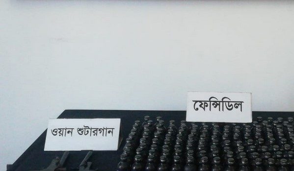 নিজস্ব প্রতিবেদক: ২টি ওয়ানশুটারগান ও ১৪২ বোতল ফেন্সিডিলসহ ১ জন অস্ত্র ব্যবসায়ীকে রাজশাহীর গোদাগাড়ী হতে গ্রেফতার করেছে র্যাব-৫।আজ শনিবার (২৫ মে)রাত সাড়ে ৪টায় রাজশাহী জেলার গোদাগাড়ী থানাধীন বিদিরপুর নামক এলাকায় অভিযান পরিচালনা করে অস্ত্র ব্যবসায়ী মোঃ রাশিকুল ইসলাম (৩৫)কে গ্রেফতার করা হয়।