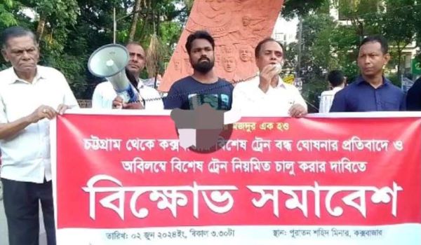 প্রদীপ দাশ কক্সবাজার (সদর) প্রতিনিধি: চট্টগ্রাম থেকে কক্সবাজার বিশেষ ট্রেন বন্ধ ঘোষণার প্রতিবাদে বাংলাদেশের কমিউনিস্ট পার্টি কক্সবাজার জেলা শাখার মানববন্ধন ও প্রতিবাদ সমাবেশ অনুষ্ঠিত হয়েছে।