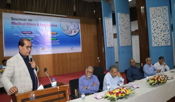 মাননীয় উপাচার্য বলেন, চিকিৎসা বিজ্ঞান, চিকিৎসাসেবা এবং চিকিৎসকদের জন্য মেডিক্যাল ইথিক্স ও লিগ্যাল ইস্যুজ অত্যন্ত গুরুত্বপূর্ণ বিষয়। এ বিষয়ে চিকিৎসকদের পর্যাপ্ত ধারণা থাকা আবশ্যক। বর্তমানে দেখা যায় কোনো কোনো চিকিৎসক রোগীদেরকে অপ্রয়োজনীয় টেস্ট দেন। এই টেস্টের পরীক্ষা মূল্য থেকে একটা কমিশন পায়। এটা যেনো না হয়। আমি আমার চল্লিশ বছরের চিকিৎসা পেশায় কোনোদিন রোগীদেরকে অপ্রয়োজনীয় টেস্ট দেইনি। টেস্টের বিনিময়ে কোনো ধরণের কমিশন নেওয়ার তো প্রশ্নই উঠে না। কোনো কোনো সার্জন প্রয়োজন ছাড়াই রোগীদেরকে অপারেশন করেন। এটাও বন্ধ করতে হবে। অপারেশন থিয়েটারে অপ্রয়োজনে অনেক ওষুধ লেখা হয়, পরবর্তীতে আবার ফার্মেসিতে সে সব ওষুধ বিক্রি করা হয়। অপ্রয়োজনে অনেক সার্জিক্যাল আইটেম রোগীর স্বজনকে দিয়ে কেনা হয় এবং পরবর্তীতে তা বিক্রি করা হয়। এসব পুরোপুরি বন্ধ করতে হবে। ক্যান্সারের চিকিৎসায় কেমোথেরাপি, হৃদরোগের চিকিৎসায় হার্টে রিং পড়ানো নিয়েও নানা অভিযোগ রয়েছে। কোনো কোনো চিকিৎসক আবার রোগীদেরকে অপ্রয়োজনীয় দামী ওষুধ দিয়ে থাকেন। যাকে মানুষ ডিববা প্র্যাকটিস বলে থাকে, এই ধরণের ডিববা প্রাকটিস দমন করা হবে।