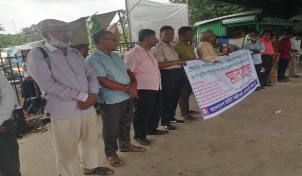 ব্রাহ্মণবাড়িয়া প্রতিনিধি: ব্রাহ্মণবাড়িয়া রেলস্টেশন আধুনিকায়নসহ কালনী এক্সপ্রেস, বিজয় এক্সপ্রেস, কক্সবাজার এক্সপ্রেস ট্রেন যাত্রা বিরতির, ২নং প্লাটফর্মের পূর্বাংশ শেড নিমার্ণসহ নিম্নবর্ণিত গণদাবিতে আজ শুক্রবার (১২ জুলাই) সকাল ৯টায় উদীচী ব্রাহ্মণবাড়িয়া জেলা সংসদের মানববন্ধন অনুষ্ঠিত হয়। এতে সভাপতিত্ব করেন উদীচী জেলা সংসদের সভাপতি জহিরুল ইসলাম স্বপন।