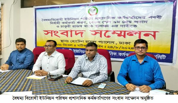সংবাদ সম্মেলনে লিখিত বক্তব্যে মোঃ মাহবুব আলম মোল্লা বলেন, পৌরসভা, সিটি কর্পোরেশন, উপজেলা পরিষদ, জেলা পরিষদের ন্যায় ইউনিয়ন পরিষদের সচিব পদের পদনাম নির্বাহী কর্মকর্তা করতে হবে। ইউনিয়ন পরিষদের সচিবের বর্তমান পদনাম স্থানীয় সরকার (ইউনিয়ন পরিষদ), সংশোধিত আইন-২০২৪ এ ইউনিয়ন পরিষদ প্রশাসনিক কর্মকর্তা করা হয়েছে যা চরম বৈষম্যমূলক। নির্বাহী কর্মকর্তা পদবীর সাথে সামঞ্জস্যপূর্ণ বেতন স্কেল ৯ম গ্রেড প্রদান করতে হবে। চাকুরী রাজস্ব খাতে স্থানান্তরসহ ডেপুটেশনে সরকারি কর্মকর্তা হিসেবে ইউনিয়ন পরিষদে পদায়ন করতে হবে। দাবি ও সংস্কার সমূহ অবিলম্বে বাস্তবায়নের ব্যবস্থা গ্রহণ না করলে বৈষম্যবিরোধী ইউনিয়ন পরিষদ, প্রশাসনিক কর্মকর্তা সমিতি অবিলম্বে সময়োপযোগী কর্মসূচি রাজপথে পালন করবে।