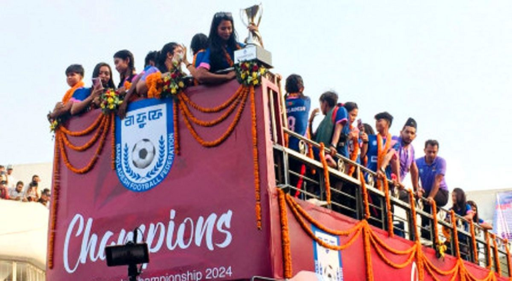 নেপালে সাফ নারী চ্যাম্পিয়নশিপ ২০২৪ জিতে বৃহস্পতিবার দেশে ফিরেছে বাংলাদেশ নারী ফুটবল দল। সেদিন সাফজয়ী নারী ফুটবলারদের বরণ করে নিতে বাফুফে ভবনে বিকেল সাড়ে ৫টা থেকে অপেক্ষা করছিলেন যুব ও ক্রীড়া উপদেষ্টা আসিফ মাহমুদ সজীব ভূঁইয়া। অপেক্ষার প্রহর শেষ হয় সন্ধ্যা ৭টায়। বিকেল ৪টায় বিমানবন্দর থেকে ছাদখোলা বাসে করে রওয়ানা দেওয়ার তিন ঘণ্টা পর বাফুফে ভবনে এসে পৌঁছায় সাফজয়ী নারী ফুটবলাররা।