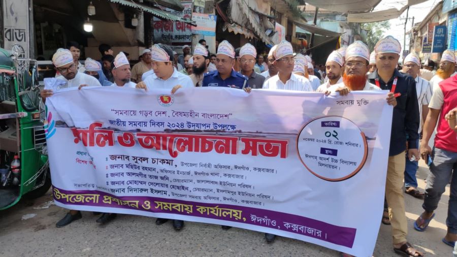 ঈদগাঁও, প্রতিনিধি: সমবায়ের মাধ্যমে বৈষম্যহীন সমাজ ও বাংলাদেশ গড়ার দৃঢ় প্রত্যয়ে আজ শনিবার ( ০২ নভেম্বর) কক্সবাজারের ঈদগাঁওতে পালিত হয়েছে ৫৩ তম জাতীয় সমবায় দিবস। দিবসের প্রতিপাদ্য ছিল “সমবায়ে গড়ব দেশ, বৈষম্যহীন বাংলাদেশ” । এ উপলক্ষে সকালে রেলি, আলোচনা সভা, সনদ ও ক্রেস্ট বিতরণ অনুষ্ঠিত হয়েছে। ঈদগাহ আদর্শ উচ্চ বিদ্যালয় মাঠ থেকে রেলিটি শুরু হয়ে বাজারের প্রধান সড়ক প্রদক্ষিণ করে। পরে বিদ্যালয়ের মোখতার আহমদ মিলনায়তনে আলোচনা সভার আয়োজন করা হয়।