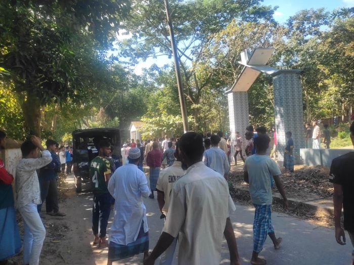 স্থানীয় ফেরদৌস হোসেন জানায়, কবরস্থানে একটি দেওয়াল ছিল। দেওয়ালের কিছু অংশ ভেঙ্গে দেয়া হয়েছে।