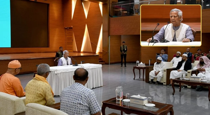 অন্তর্বর্তী সরকারের প্রধান উপদেষ্টা বলেন, শপথ গ্রহণের পরে শুনতে আরম্ভ করলাম সংখ্যালঘুদের ওপর নির্যাতন হচ্ছে। তখন মনটা খারাপ হয়ে গেল। এর পরপরই ঢাকেশ্বরী মন্দিরে গেলাম। সেখানেও বললাম আমরা একই পরিবারের সদস্য।