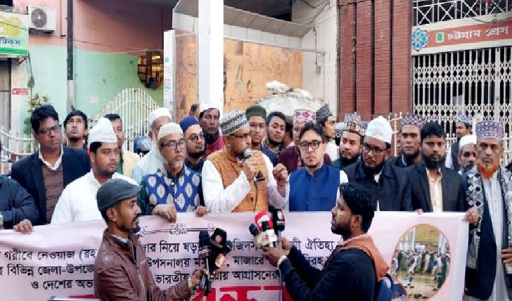 মহিউদ্দিন সাগর,নগর প্রতিবেদক: বাংলাদেশ সূফীবাদী ঐক্য ফোরাম কর্তৃক আয়োজিত ভারতের খাজা গরীব নেওয়াজ (রহ.) দরবার ও মাজার নিয়ে ষড়যন্ত্র,২০০ বছরের পুরানো মসজিদ ভাংচুর,ইসলামী ঐতিহ্য ধ্বংস,দেশের বিভিন্ন জেলা উপজেলায় ধর্মীয় উপসনালয়,মসজিদ, মাজার সমূহে সন্ত্রাসী হামলা,নিরীহ মানুষ হত্যা এবং দেশের অভ্যন্তরীণ বিষয়ে ভারতীয় মিডিয়ায় আগ্রাসনের প্রতিবাদে মানববন্ধন কর্মসূচি পালন করে সংগঠনটি। ফোরামের কেন্দ্রীয় চেয়ারম্যান সাংবাদিক নুর মোহাম্মদ রানার সভাপতিত্বে আজ শনিবার (১৪ ডিসেম্বর) চট্টগ্রাম প্রেসক্লাবের সামনে এই প্রতিবাদ মানববন্ধন অনুষ্টিত হয়।