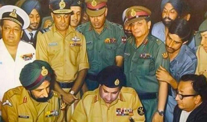 দি ক্রাইম ডেস্ক: ১৯৭১ সালের ১৬ ডিসেম্বর ভারতীয় সেনাবাহিনী ও মুক্তিবাহিনীর যৌথ কমান্ডের কাছে আত্মসমর্পণ করেছিল পাকিস্তান সেনাবাহিনী। আত্মসমর্পণের কাগজে স্বাক্ষর করেছেন লেফটেন্যান্ট এ কে কে নিয়াজি। আরো উপস্থিত ছিলেন ভারতের সেনা কর্মকর্তা লেফটেন্যান্ট জেনারেল জগজিৎ সিং অরোরা।