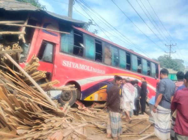 প্রত্যক্ষদর্শীরা বলছেন, শ্যামলী পরিবহনের (ঢাকা মেট্রো ব ১৪-৩১০৩) বাসটি মুলত নিয়ন্ত্রণ হারায়। নিয়ন্ত্রণ হারিয়ে বাসটি পাশ্ববর্তী সালাহউদ্দিনের কাঠের দোকানে ঢুকে পড়ে। এতে কাঠের দোকানটি ও পাশের রিদুয়ানের ডেকোরেশনের দোকান তছনছ হয়ে যায়। বাসের সামনের অংশ দুমড়ে-মুচড়ে গিয়ে কর্মচারী কবির আহমদসহ ৩ জন আহত হন।